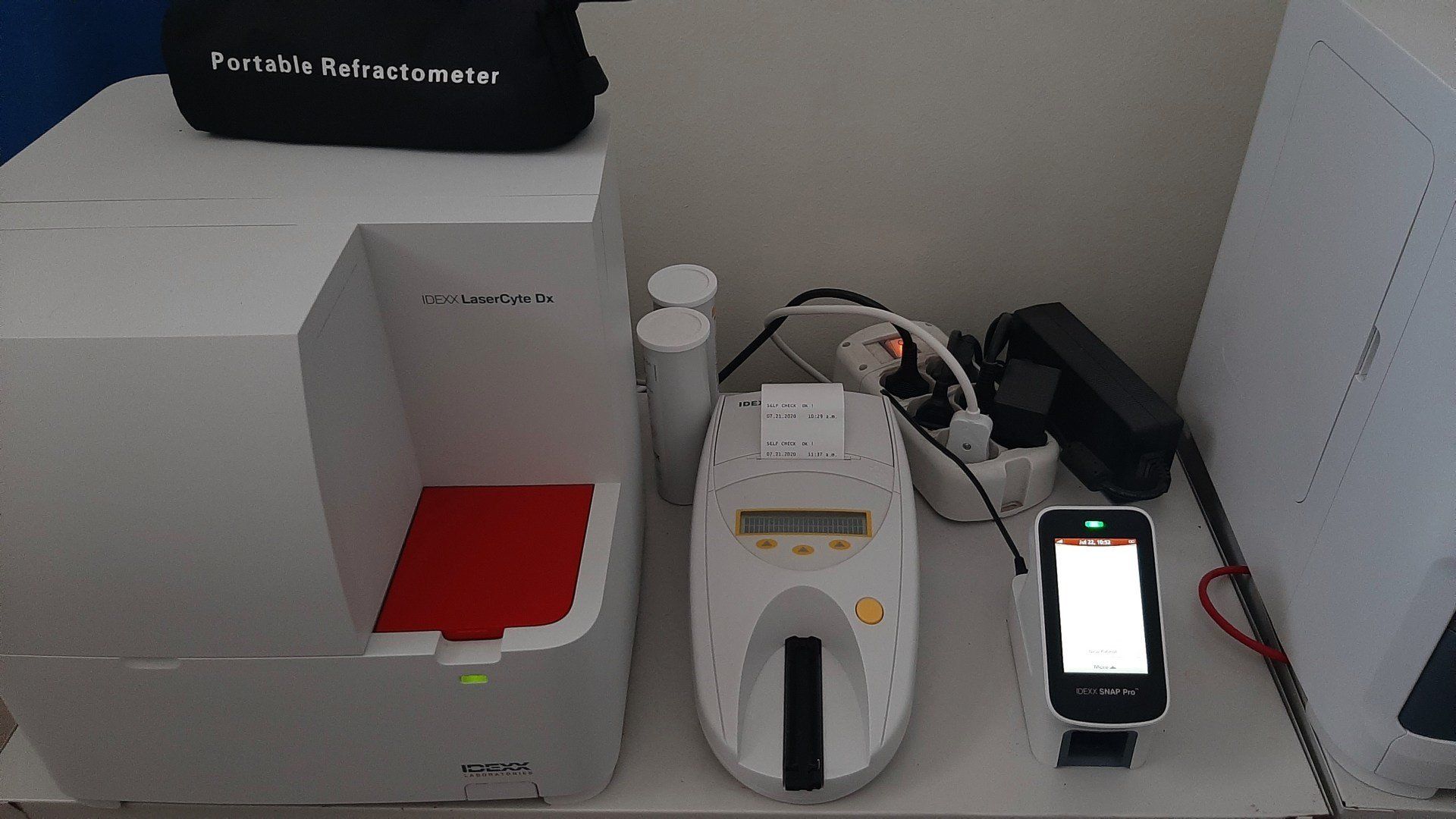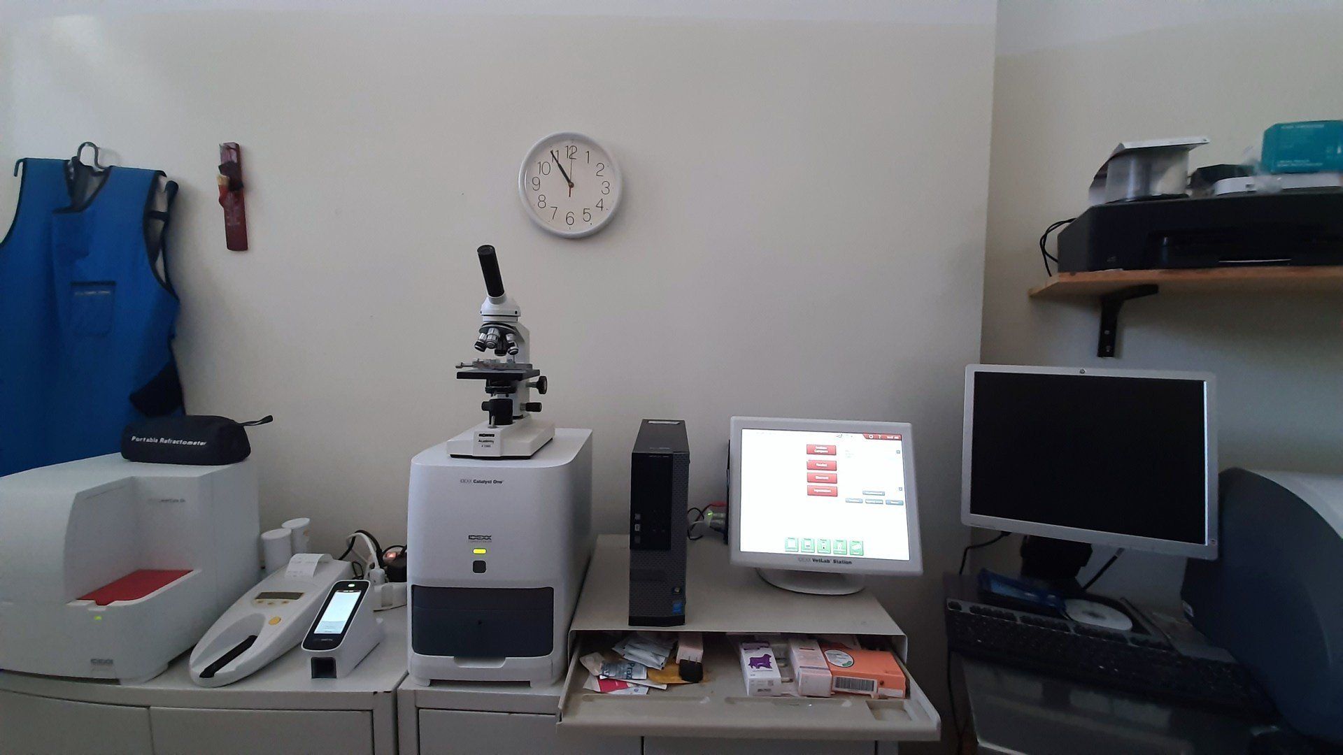 Possediamo macchine di ultima generazione come l'ecografo, l'elettrocardiografo, l'apparecchio per anestesia gassosa con monitoraggio. Inoltre, siamo un laboratorio d'analisi ben strutturato ed efficiente.